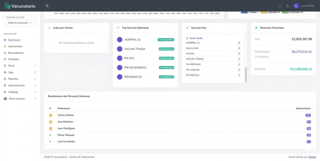 Zucovac puede usarse tanto en un vacunatorio pequeño como en una red con varias sedes. El sitio destaca soporte para múltiples centros, cambio de sede, transferencias de stock entre centros, roles granulares y reportes consolidados. También incluye liquidación automática de vacunadores, dashboards con KPIs en tiempo real y herramientas de seguimiento para próximas dosis y recordatorios. Eso lo convierte en una solución útil no solo para operar, sino también para gestionar crecimiento y control.