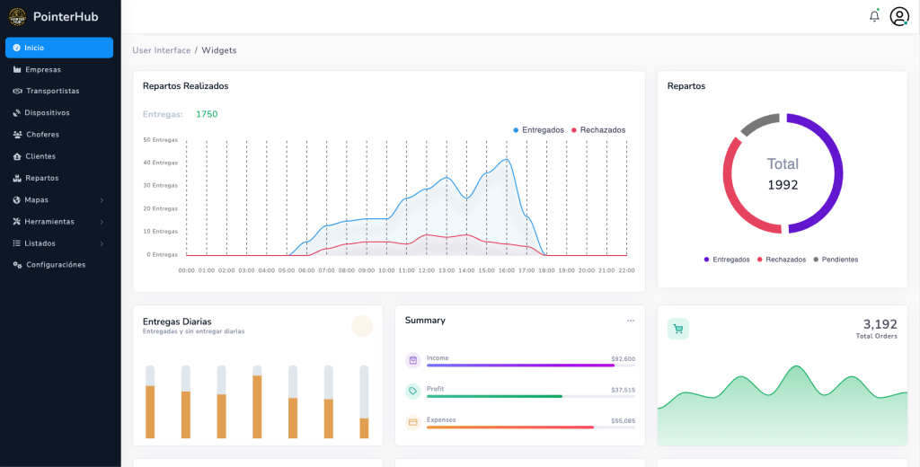 • Seguimiento en Tiempo Real: Visualización precisa de vehículos gracias a la integración con dispositivos GPS.