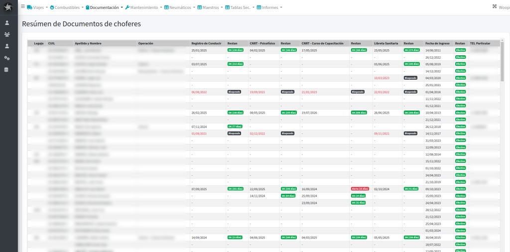 • Gestión Completa: Viajes, liquidaciones automáticas de choferes y clientes, y un historial detallado de operaciones.