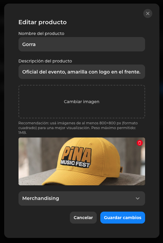 La plataforma permite vender productos adicionales asociados al evento, como por ejemplo: