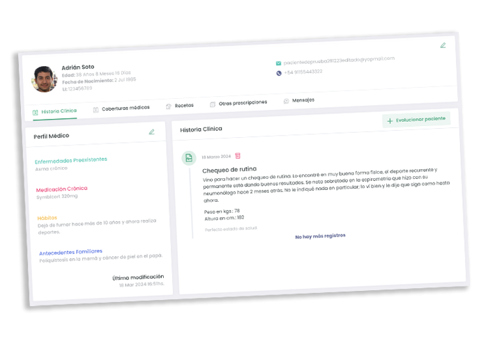 El módulo de Historia Clínica de MediCloud está diseñado para ofrecer una gestión integral y eficiente de los registros médicos de los pacientes. Este sistema permite a los profesionales de la salud acceder rápidamente a la información clínica relevante, actualizar registros de manera segura y compartir datos con otros especialistas cuando sea necesario. La interfaz es intuitiva y está optimizada para facilitar el flujo de trabajo médico, garantizando que toda la información esté organizada y accesible en un solo lugar.