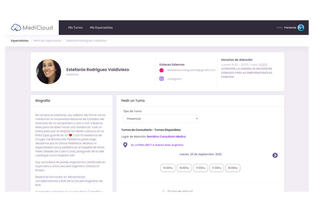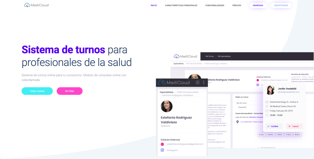 MediCloud es una plataforma de gestión integral médica en línea, diseñada para emitir recetas electrónicas, gestionar turnos médicos y consultas virtuales, así como llevar las historias clínicas de los pacientes y demás menesteres diarios de un consultorio médico. Ofrece funcionalidades como recordatorios automáticos de turnos por WhatsApp y email, videollamadas gratuitas para consultas online, y la posibilidad de cobrar consultas a través de Mercado Pago y PayPal. También incluye integración con calendarios de Google, iOS y Android, y permite a los pacientes autogestionar sus turnos y perfiles médicos desde un sitio web personalizado. Además, cuenta con herramientas para disminuir el ausentismo y mejorar la experiencia tanto para médicos como pacientes.