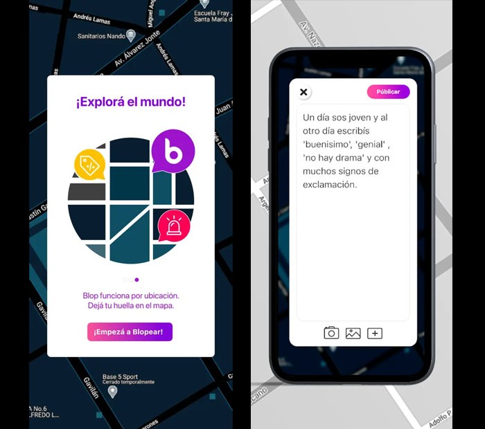 Desarrollamos una compleja aplicación que permite dejar mensajes en el lugar dónde te encuentres, y que otros usuarios puedan interactuar con esos mensajes cuando están en las cercanías del lugar dónde el mensaje fue emitido. Una compleja aplicación y todo un desafío para el equipo técnico, que permite conectarse con los sistemas de geoposición disponibles del teléfono para ubicar al usuario. Incluye un completo sistema de mapas, y una interfaz única y completamente customizada y diseñada desde cero, exclusiva para Blop. Contiene además numerosas animaciones, transiciones y hasta efectos de sonidos. Todo un logro para el equipo técnico desarrollar esta aplicación en un proceso intenso pero divertido. La aplicación está disponible para Android y para iOS. Además cuenta con un complejo sistema de administración que permite medir la interacción de los usuarios con la plataforma, así como moderar el contenido de la misma y mantener así la seguridad de todos los usuarios.