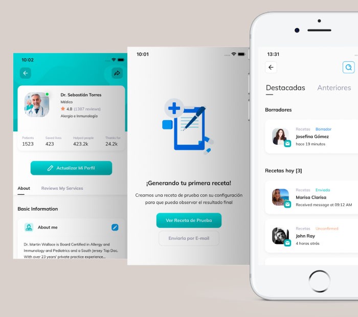Desarrollo íntegro y completo de toda la API que maneja el sistema. Aplicaciones desarrolladas completas y funcionando para Android y para iOS. Mantenimiento continúo de todo el sistema, trabajando codo a codo con el cliente para mantener el servicio activo, y aplicando constantemente mejoras y funcionalidades nuevas. Acompañamos a nuestro cliente en este desafío de digitalizar de forma íntegra y ágil las recetas médicas y otras prescripciones y certificados, en un mundo donde la medicina digital cobra cada vez más fuerza y determina en muchos casos el destino y el rumbo que muchos proyectos médicos toman en su ciclo de vida. Por nuestra parte, tomamos parte activa de un proyecto que busca mejorar considerablemente la experiencia de médicos y pacientes, y busca facilitar la emisión de documentos médicos, acortando la distancia entre todos los actores que intervienen en el proceso, incluyendo validaciones de los documentos con terceros, integrados a un vademecum y a un repositorio de prácticas médicas, y asistiendo al médico a emitir recetas válidas, verificadas y seguras, para que el paciente obtenga el servicio o producto que busca en la última milla de todo el proceso sin sufrir contratiempos.