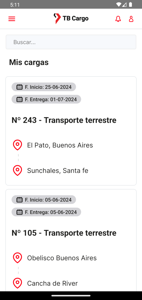 Hemos desarrollado una aplicación móvil para Android e iOS en React Native para TB Cargo, diseñada para servir tanto a chóferes como a clientes, adaptándose a las necesidades específicas de cada usuario.